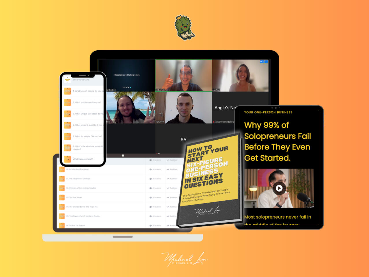 and helps you design your next six-figure one-person business in six easy questions.Each question builds on the last.Each answer brings you closer to your unique offer.By the end, you’ll have a clear roadmap for what to sell, who to serve, and how to launch.